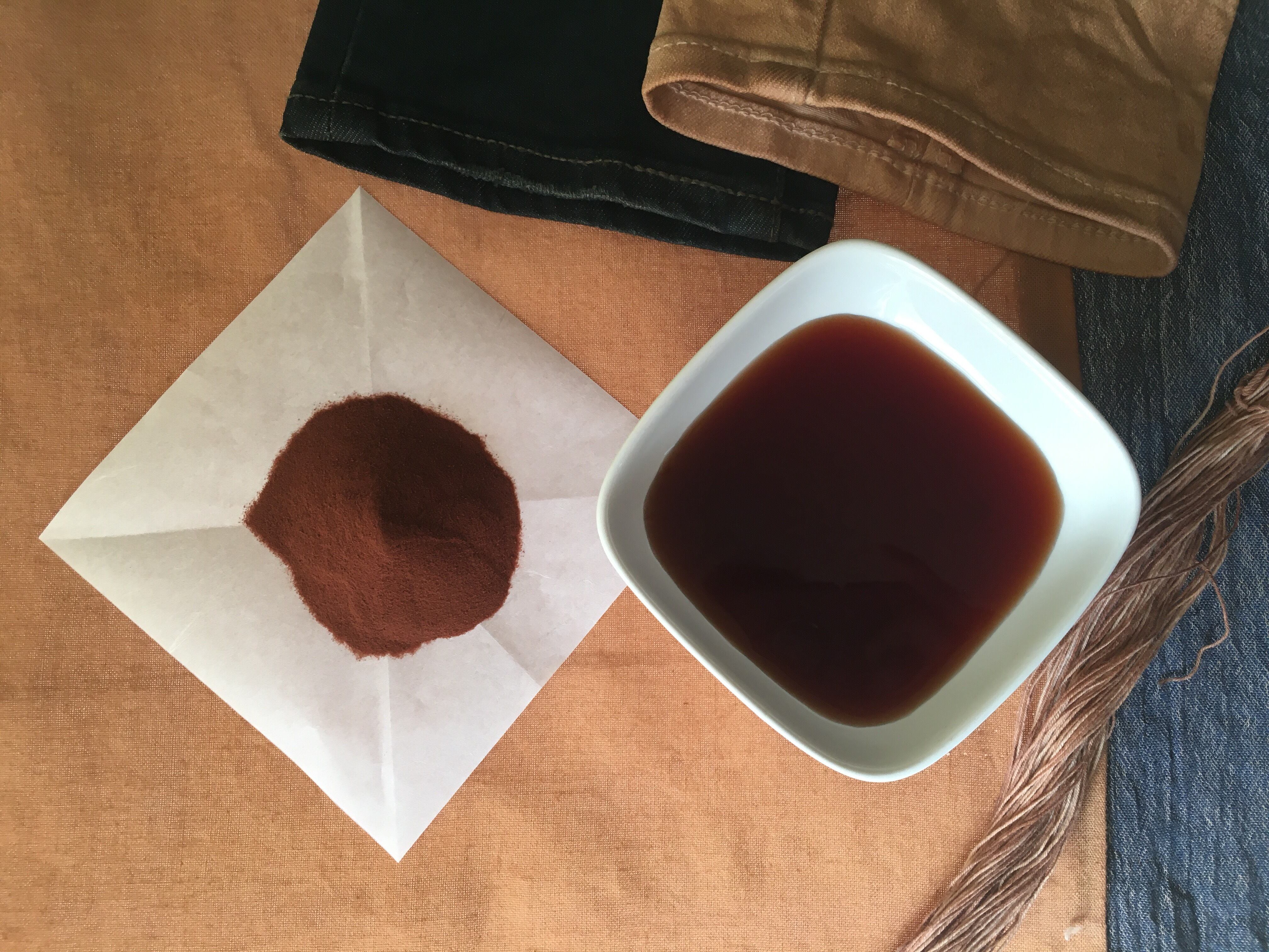 ・ 原液で染めると生地が硬くなります。薄い柿渋液で繰り返し染める方が柔らかく仕上がり