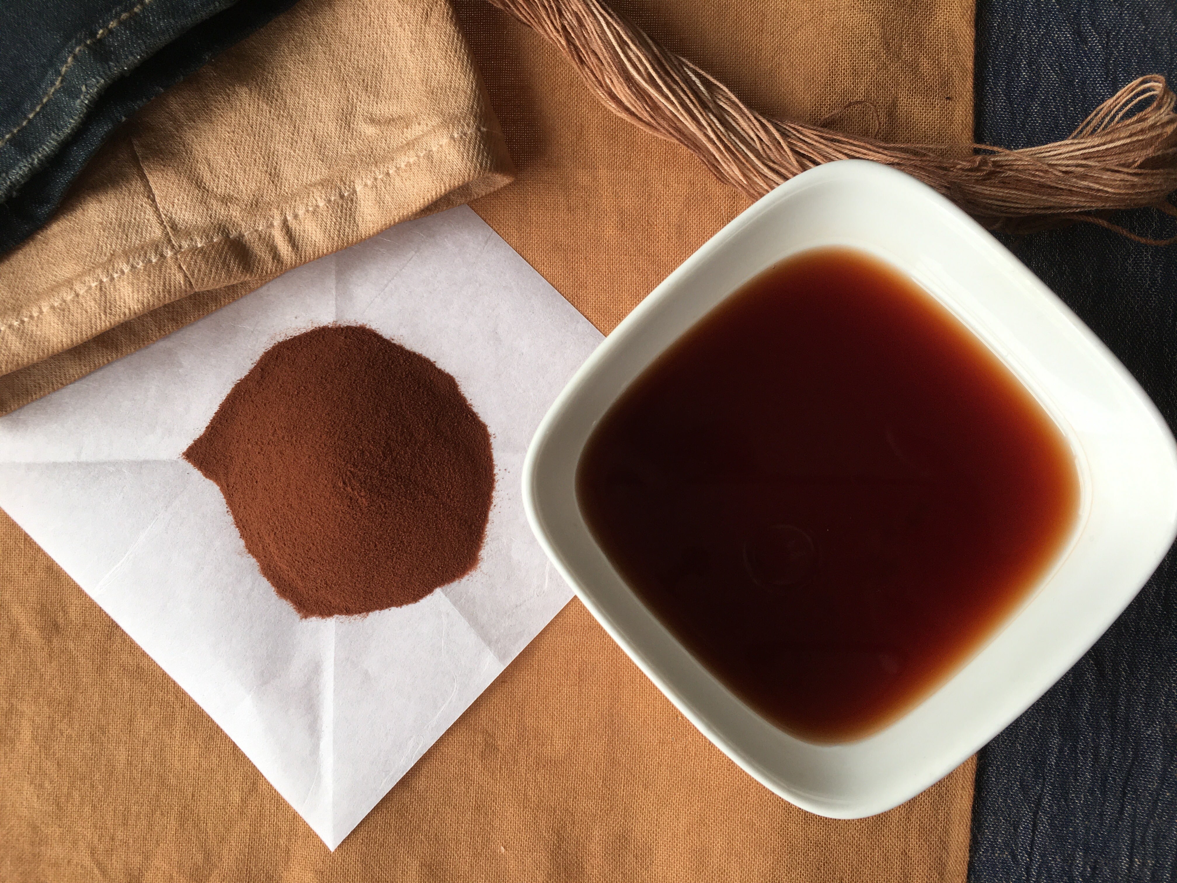 ・ 原液で染めると生地が硬くなります。薄い柿渋液で繰り返し染める方が柔らかく仕上がります。