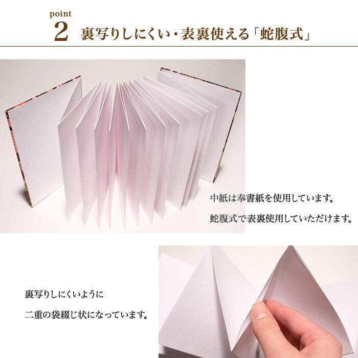 ・ジャバラ式に折りたたんだノートです紙は二重になっており、墨が裏移りしにくくなっています。